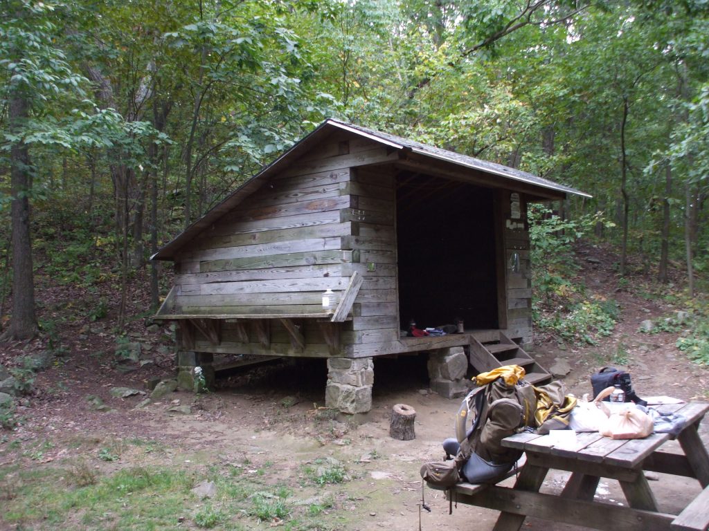 Before the trail moves out of PA it comes to the Delaware Water Gap, and, so, one of my last hikes was that section. Just south of the Water Gap is a cliff that overlooks a large valley. It’s a beautiful spot and there’s a shelter there that can hold some 25 people, if they’re all packed in. It’s a 3-sided shelter and we hung tarps down from the roof to cover the 4th side, because there was a storm coming.